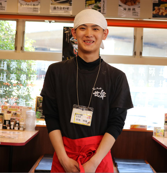 石川県立七尾東雲高塔学校卒、松任店のホールスタッフとして活躍後